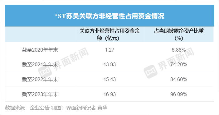 此外,在2020年至2023年,江苏吴中还使用支付无商业实质的贸易业务采购款等形式,向关联方提供资金,形成了关联方非经营性占用资金(情况如下图)。因为没有在年报中信披,监管层认为,企业年报存在重大遗漏。